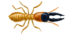 - Soldiers – The largest of the classes, this class can reach up to 1 inch in length and is the dampwood termite responsible for the defense of the tunnels and colony. Dark red in color on their back and tan on the stomach; the soldiers have abnormally large heads and pincers (take about 1/3 of their body).